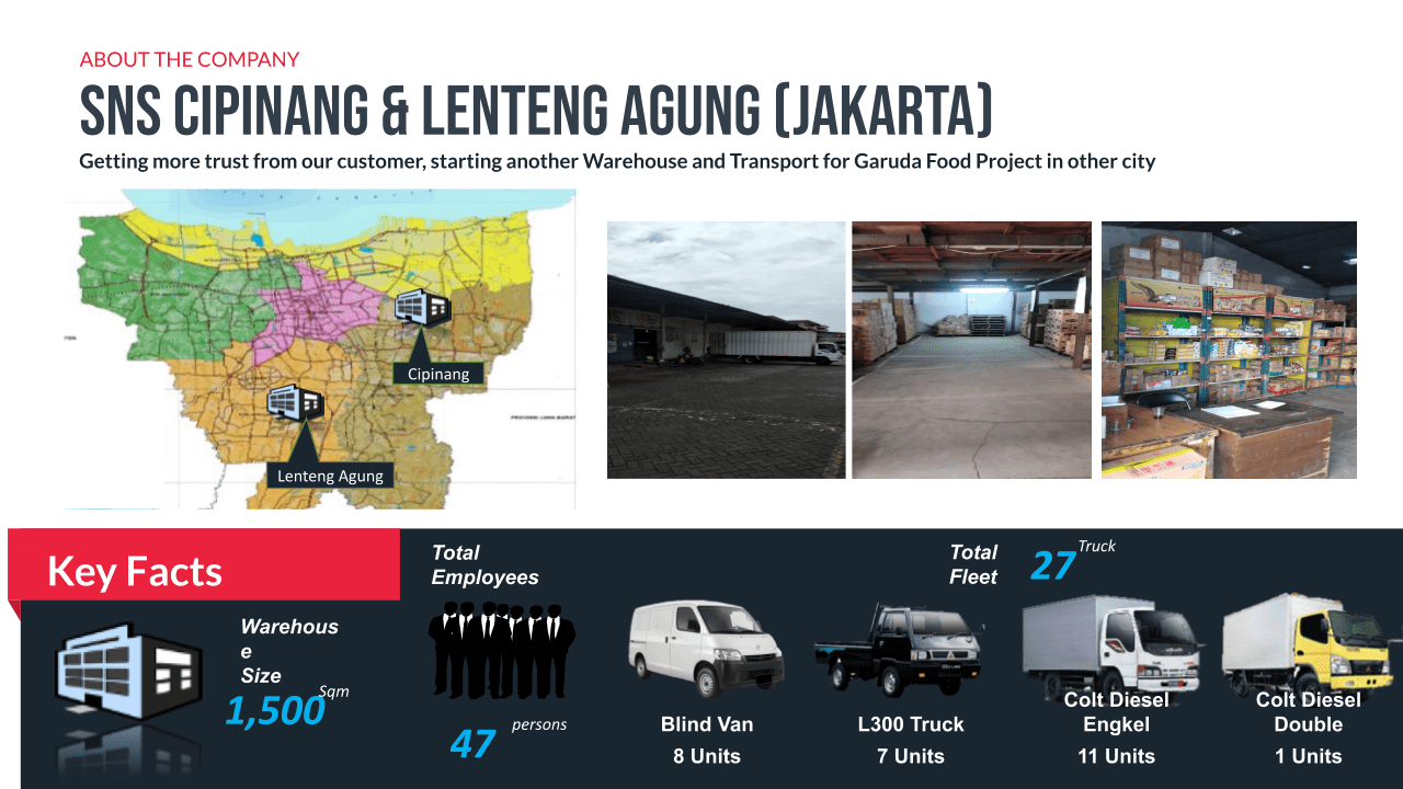 - Total WH area 1,518 sqm, equipped with canteen, musholla,